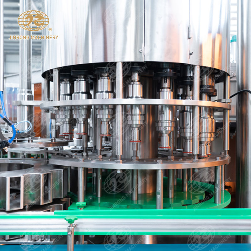 3. 灌裝:在接下來(lái)的工作站,經(jīng)過(guò)定量灌裝設(shè)備,將碳酸飲料按照預(yù)設(shè)的容量精確地灌裝入瓶子中。灌裝設(shè)備通常采用重力式下料或者壓力式下料,保證了灌裝的準(zhǔn)確性和穩(wěn)定性。