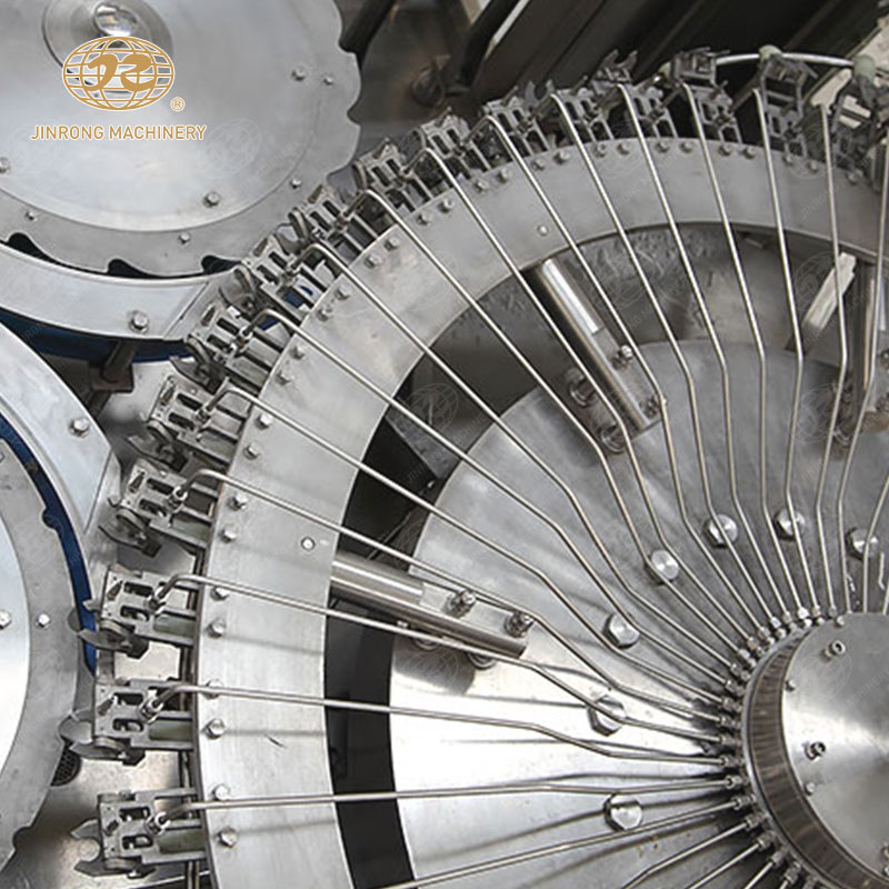 瓶洗凈系統(tǒng)是為了確保灌裝的水瓶在衛(wèi)生條件下運(yùn)輸和存儲(chǔ)。該系統(tǒng)會(huì)先對(duì)瓶體進(jìn)行外表清洗,然后送入高壓噴洗區(qū),利用噴嘴對(duì)內(nèi)部進(jìn)行高壓清洗,同時(shí)還有漂洗、消毒等步驟,最終保證瓶子的潔凈度和無菌性。